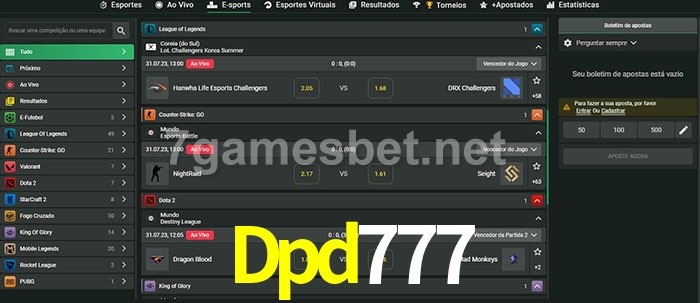 A aposta Dpd777 oferece aos jogadores a experiência mais conveniente de apostas em eSports!